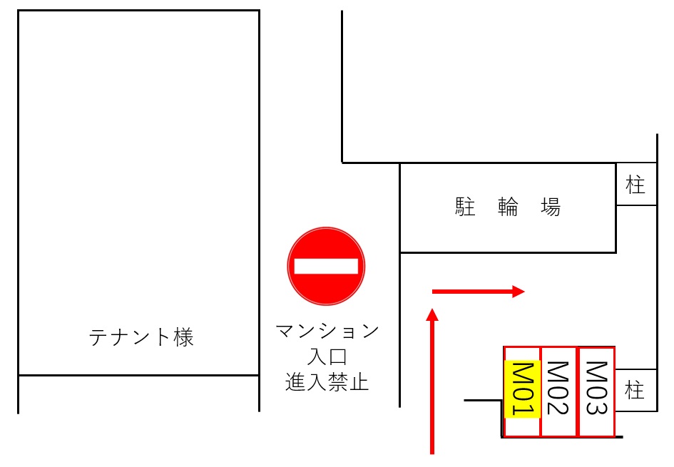 入庫サイズを必ずご自身で確認の上、車室に収まるバイクを駐車して下さい。