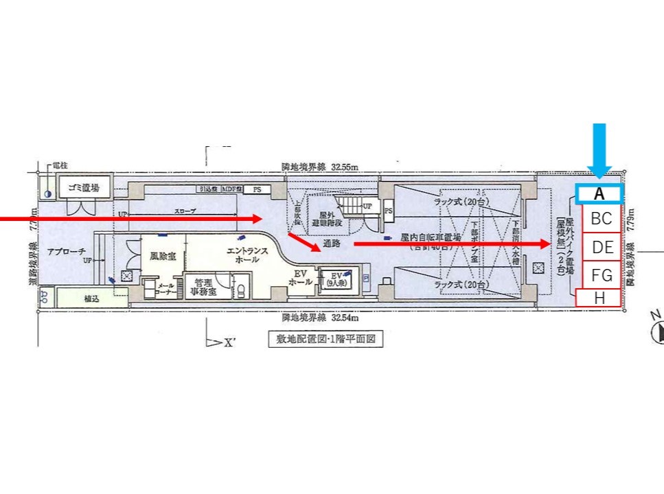 入庫サイズを必ずご自身で確認の上、車室に収まるバイクを駐車して下さい。
