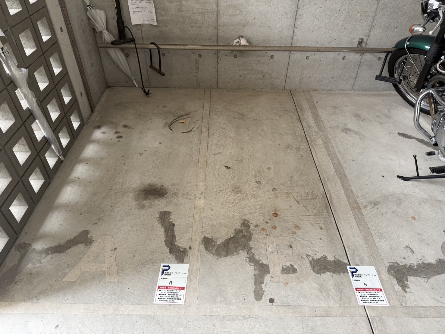 入庫サイズを必ずご自身で確認の上、車室に収まるバイクを駐車して下さい。