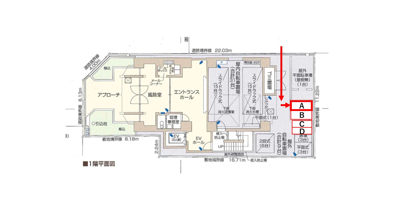 入庫サイズを必ずご自身で確認の上、車室に収まるバイクを駐車して下さい。
