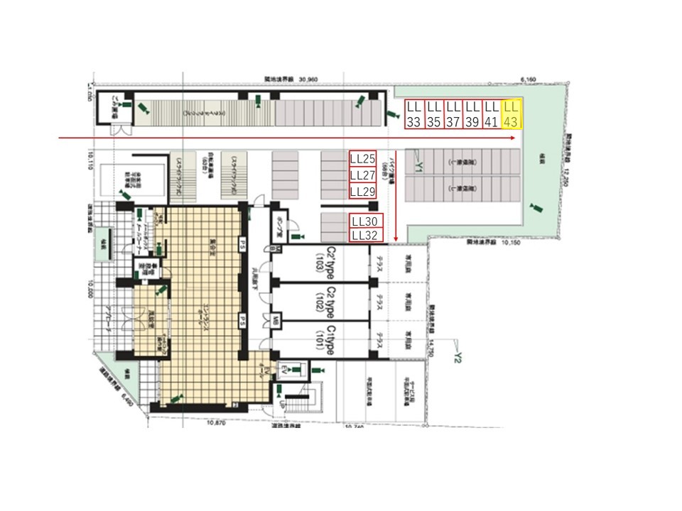 入庫サイズを必ずご自身で確認の上、車室に収まるバイクを駐車して下さい。