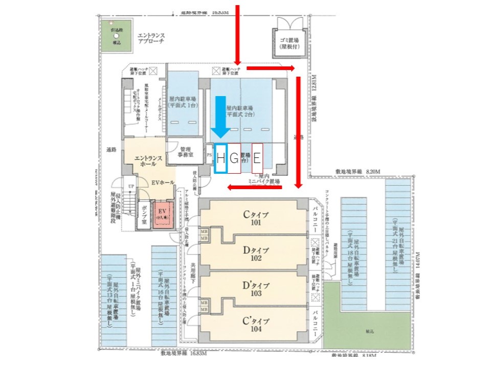 入庫サイズを必ずご自身で確認の上、車室に収まるバイクを駐車して下さい。