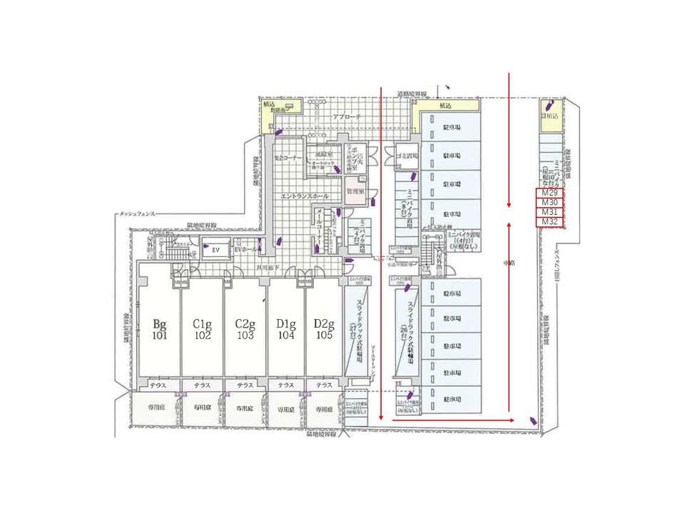 入庫サイズを必ずご自身で確認の上、車室に収まるバイクを駐車して下さい。