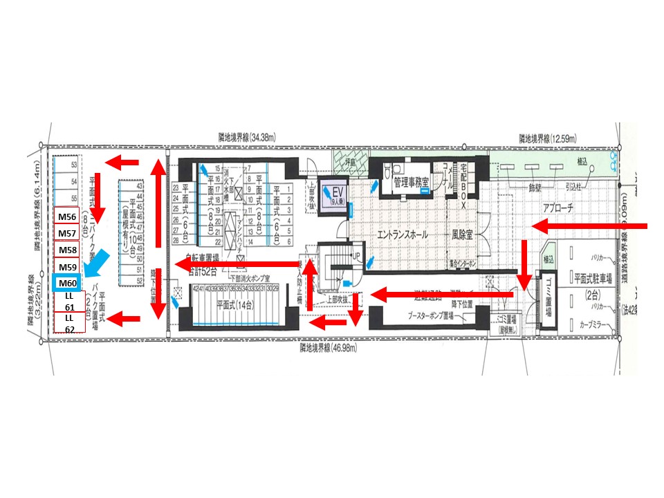 入庫サイズを必ずご自身で確認の上、車室に収まるバイクを駐車して下さい。