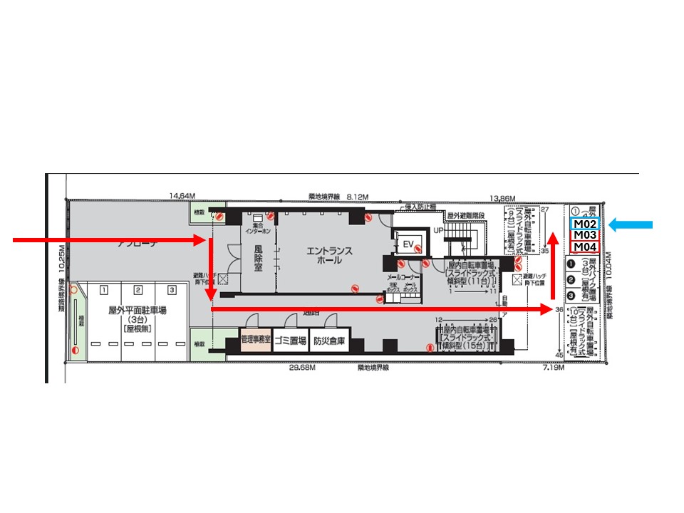 入庫サイズを必ずご自身で確認の上、車室に収まるバイクを駐車して下さい。