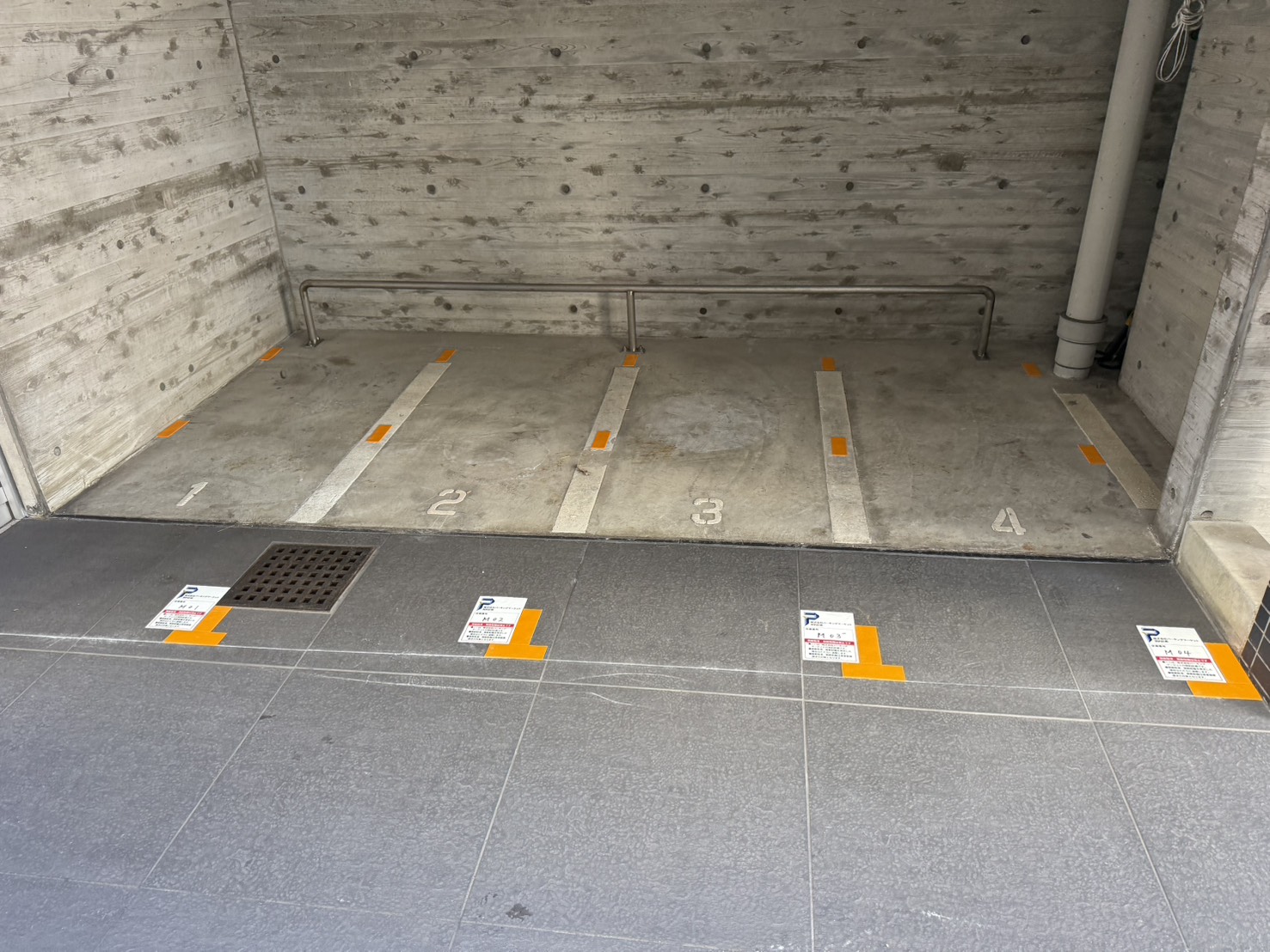 入庫サイズを必ずご自身で確認の上、車室に収まるバイクを駐車して下さい。